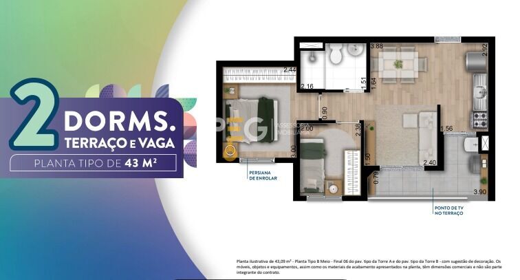 Valor a partir de R$ 364.300,00 para unidades de 42,90m² - 3º andar - Torre A - Final 3