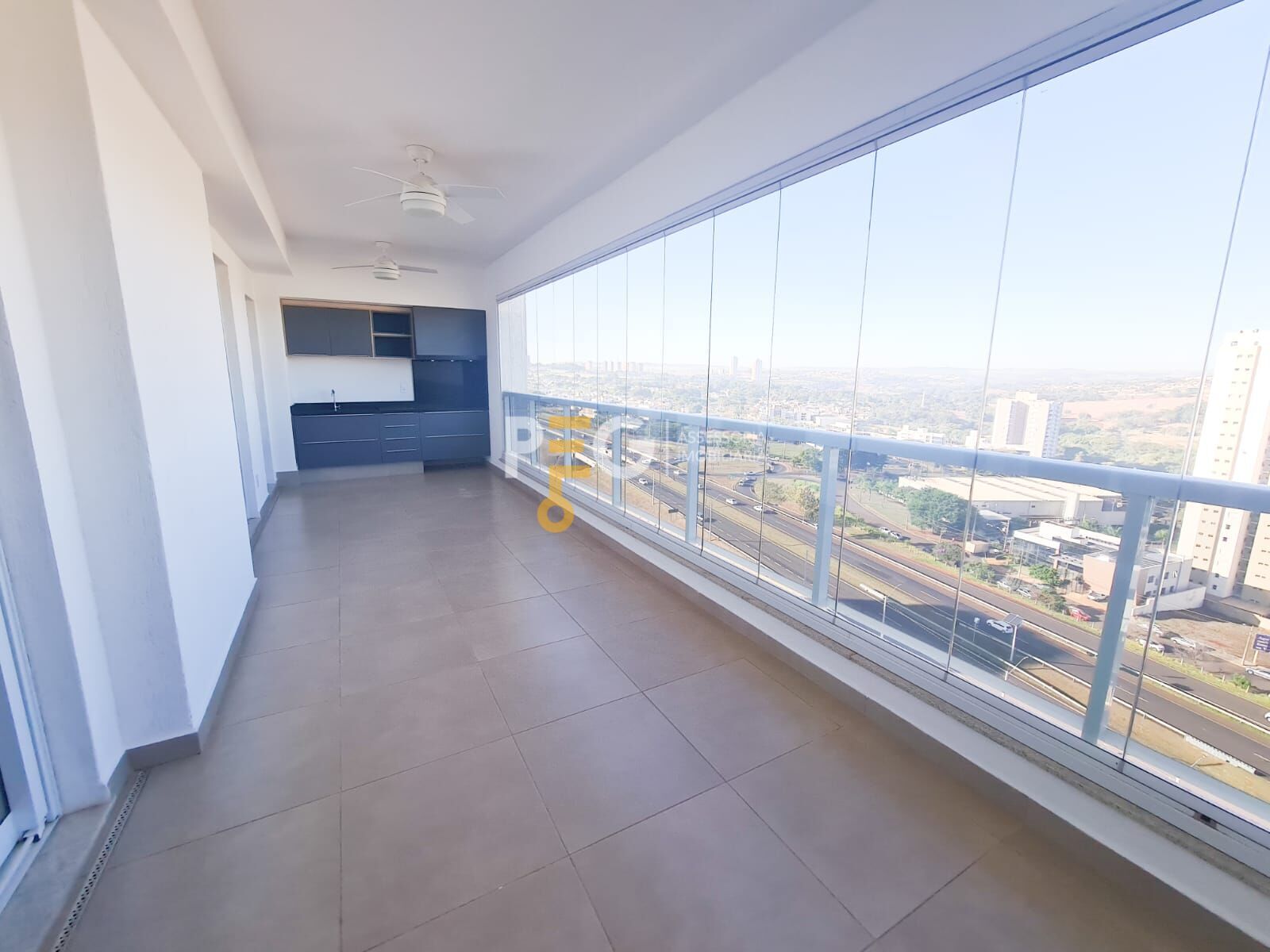 - Ampla varanda gourmet fechada em Blindex e integrada com a cozinha