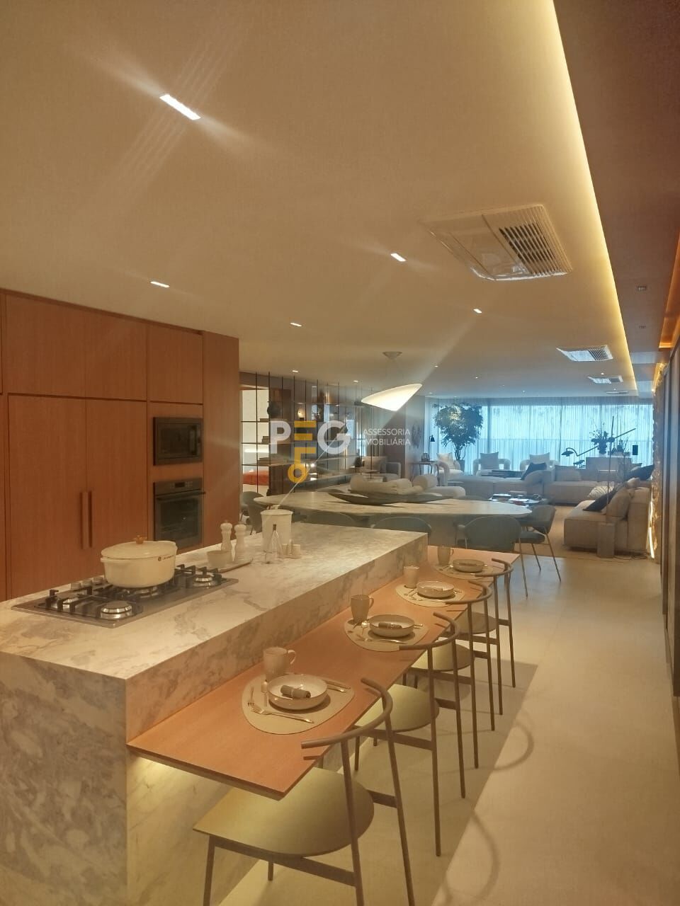 Elevador privativo, lavabo, cozinha americana integrada com os ambientes de sala, área de serviço com banheiro e duas vagas de garagem.