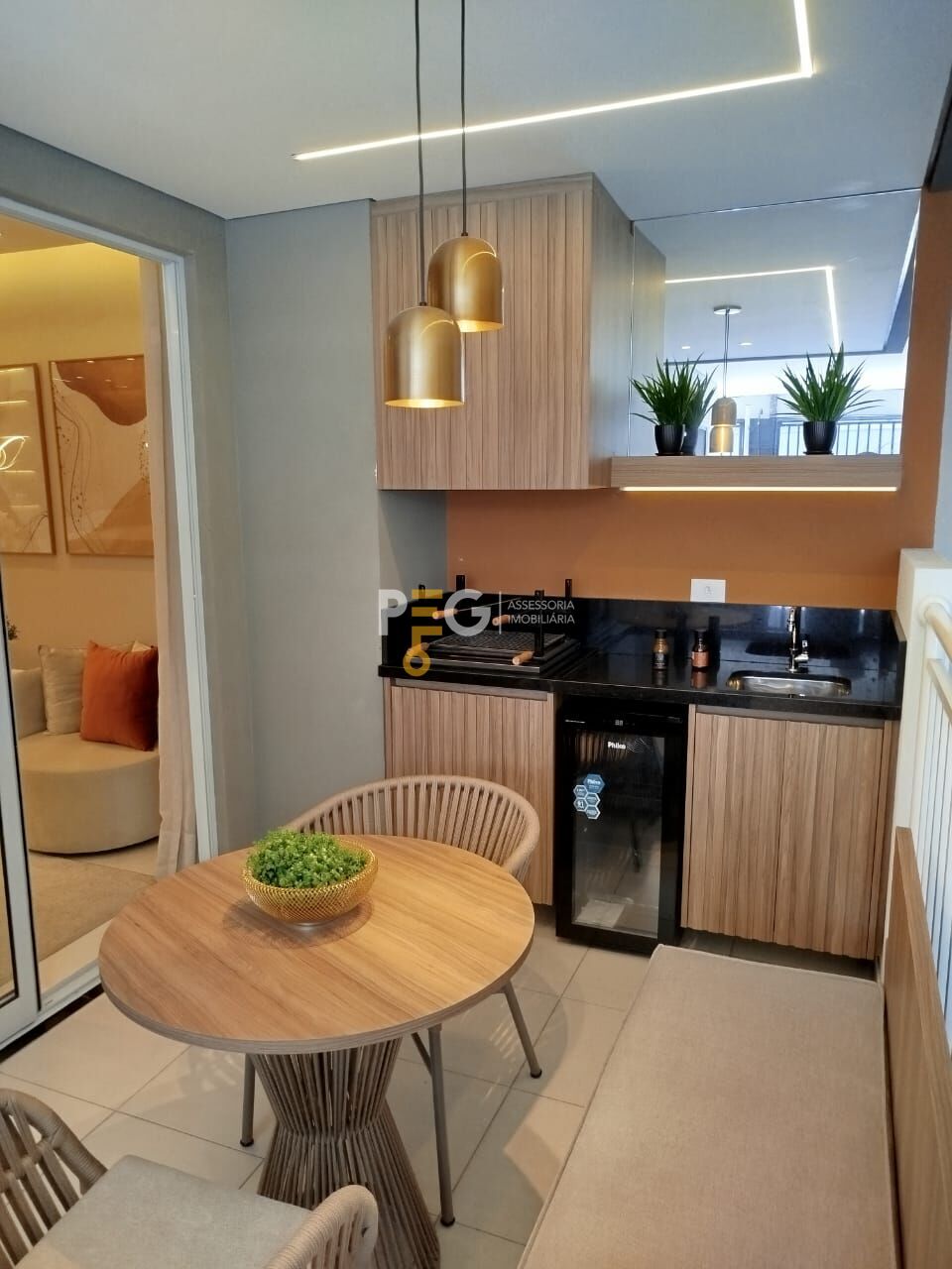 Sala para dois ambientes, integrada a varanda Gourmet