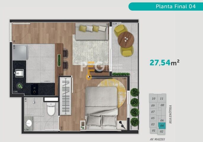1 Dormitório de 27,49m2 a 29,03m2