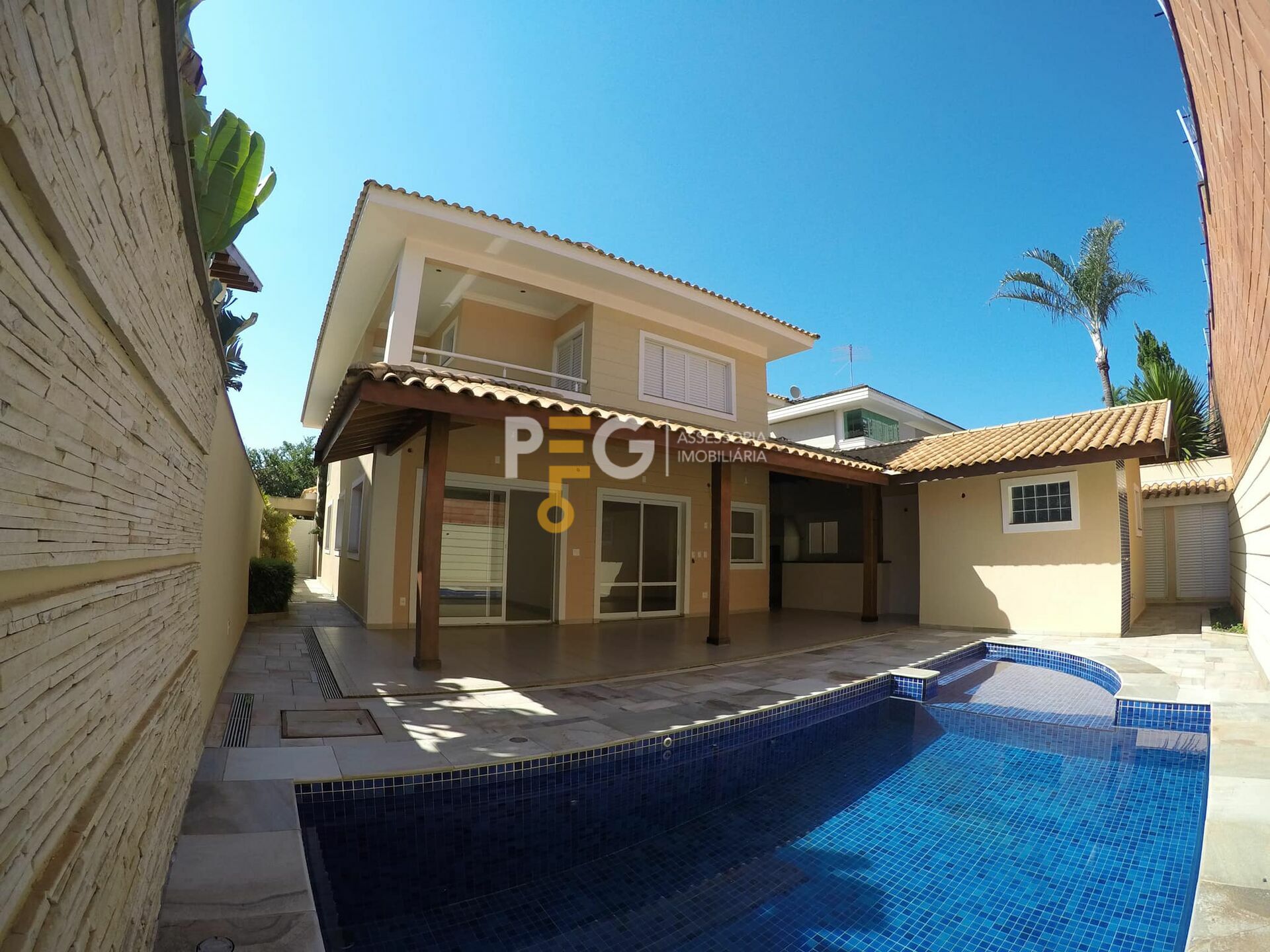 ✓ Sala de TV/Home Theatre com vista para a varanda, piscina e jardim;